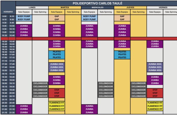 Aquí os dejamos nuestra parrilla actualizada de actividades dirigidas. En el pabellón polideportivo Carlos Taulé tenemos variedad de actividades para que empieces a cuidarte: Gap, Zumba, Zumba Kids Step y Ciclo Indoor. Además, recientemente hemos renovado la sala fitness y de musculación para mejorar la experiencia de todos los usuarios y proporcionar mayor confort y…